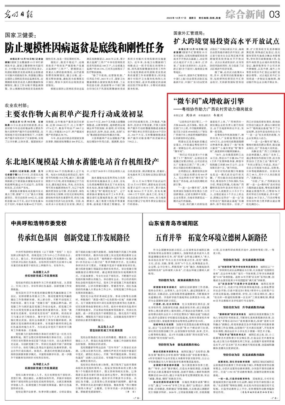 12月17日,光明日报第3版刊发文章《“微车间”成增收新引擎——粤桂协作助力广西农村劳动力稳岗就业》,讲述粤桂两省区发挥“一县一企+微车间”’农村劳动力稳岗就业基地、粤桂高质量职教就业联盟作用,精准对接农民群众需求,稳定就业岗位,打造农民增收的新引擎。