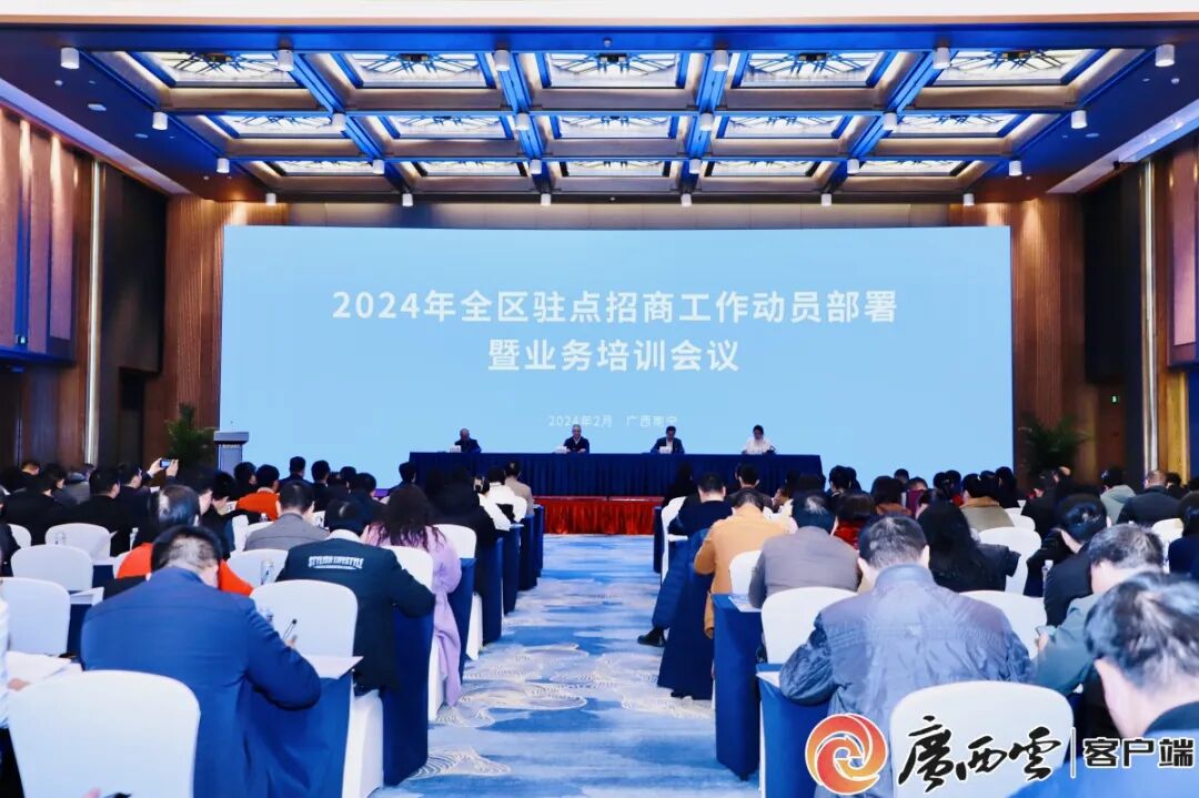 2月23日,2024年全区驻点招商工作动员部署暨业务培训会议在南宁召开,我区派出176支队伍、740人赴粤港澳大湾区、长三角、京津冀等地区开展驻点招商。