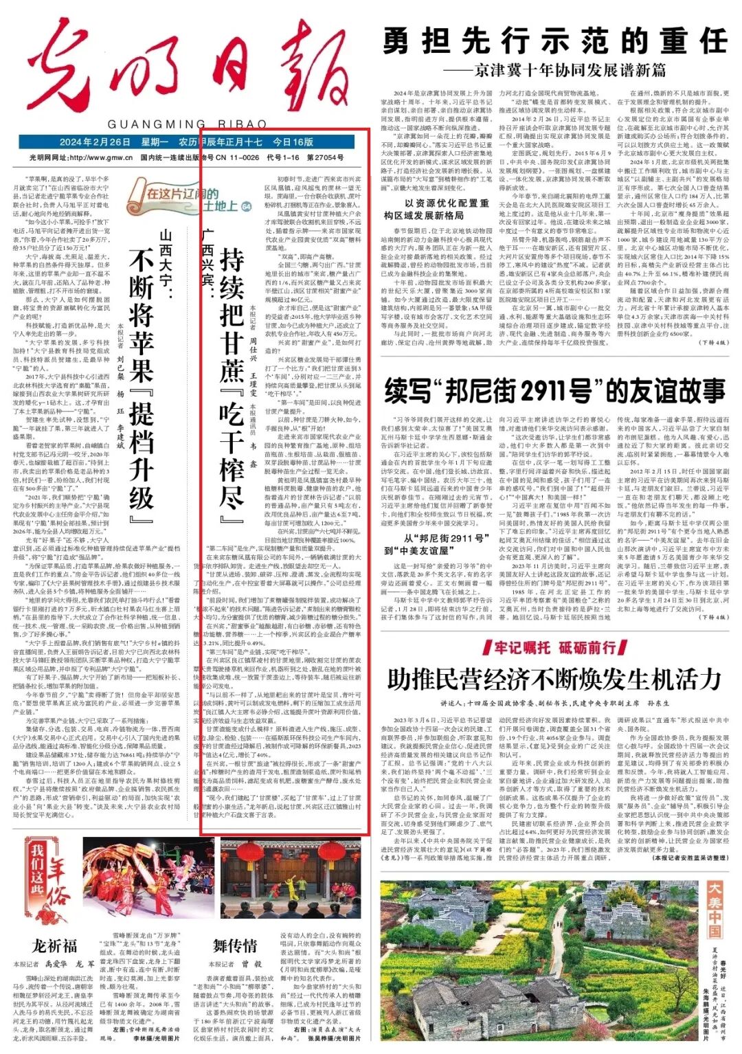 2月26日,光明日报头版刊发文章《广西兴宾:持续把甘蔗“吃干榨尽”》,聚焦广西来宾市兴宾区,大力发展甘蔗产业,把甘蔗从头到尾"吃干榨尽",形成了一条“甜蜜产业链”。