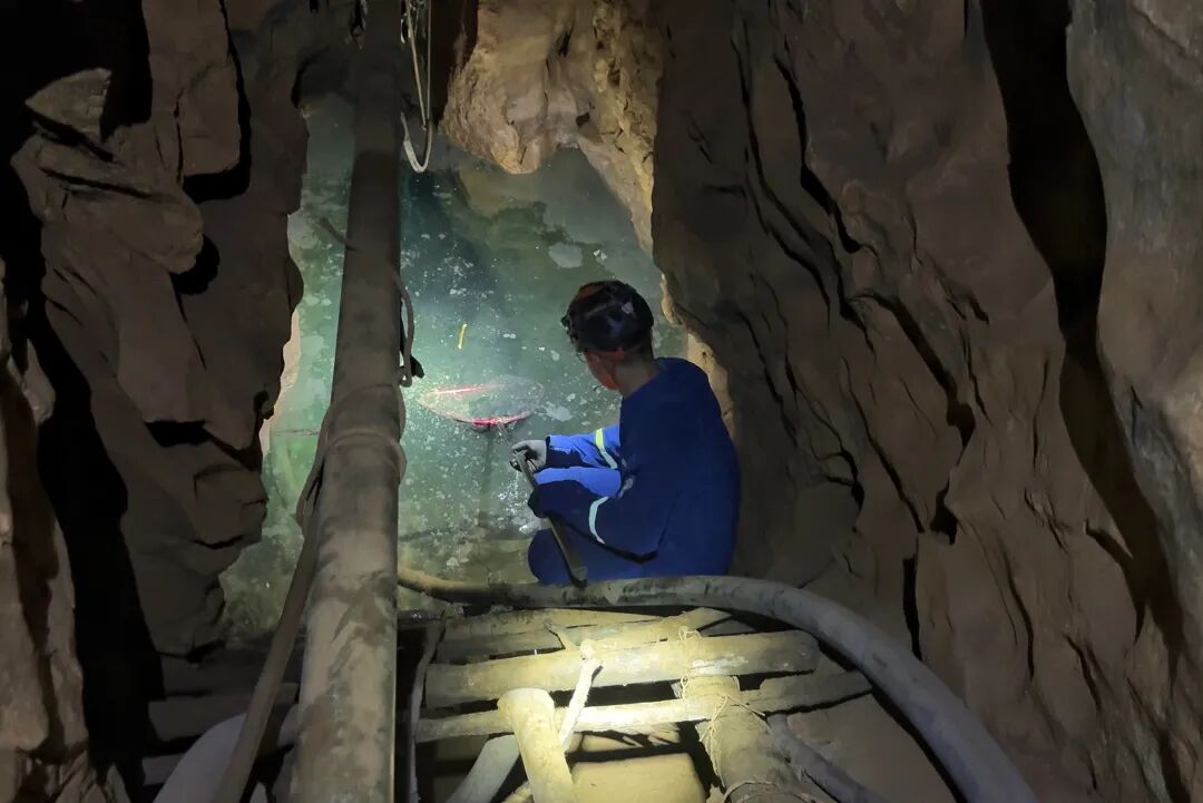 科研人员在溶洞对龙州中华喀鳅开展研究监测 。农正权 摄