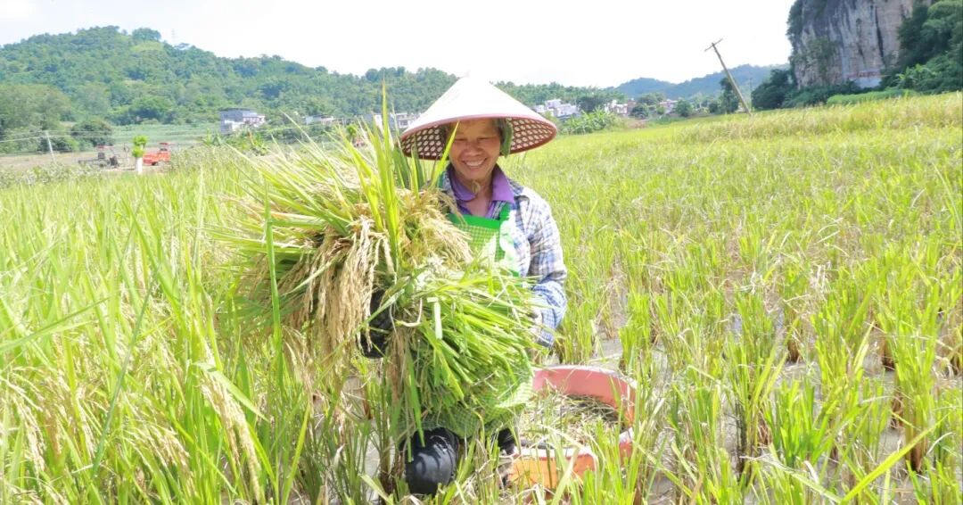 村民梁阿苗告诉记者,此次丰收让她心里满是欢喜。“我们家今年种植早稻3亩,亩产大约1000斤,晒干后能有800斤左右,产量还是可以的。”梁阿苗说。