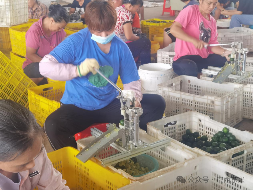 工人正在使用开皮机去除小青柑果肉 摄影 张燕