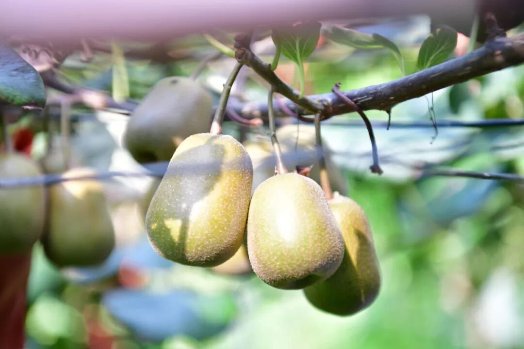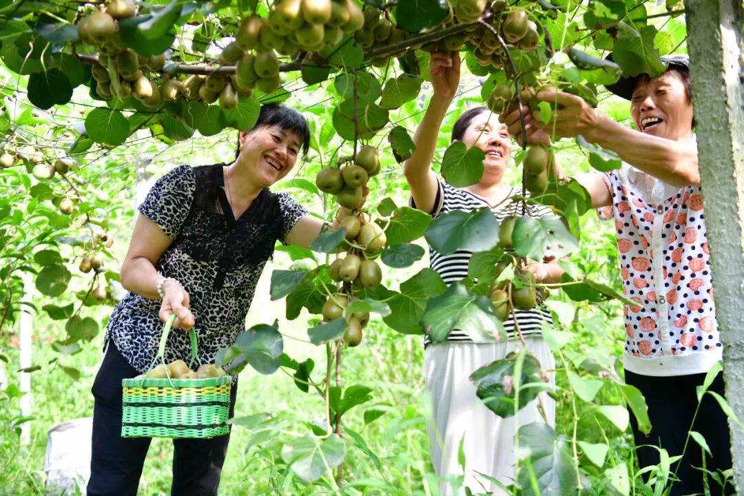 走进滩田屯猕猴桃种植基地,放眼望去,漫山遍野都是藤蔓交织的果树。藤蔓之下,一个个成熟的猕猴桃挂满枝头,散发着诱人的清香,果农们穿梭于果树林中来回采摘,丰收的喜悦洋溢在脸上。
