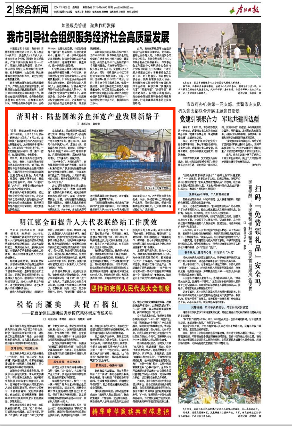 2024年8月29日《左江日报》第二版刊登《清明村:陆基圆池养鱼拓宽产业发展新路子》,全文如下: